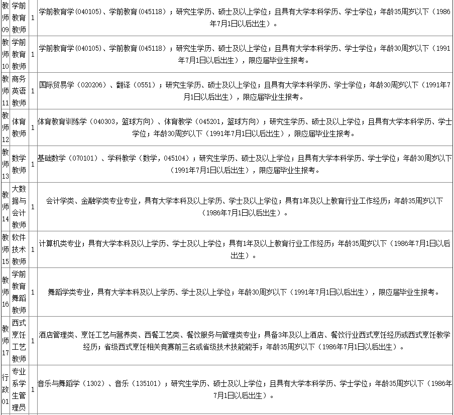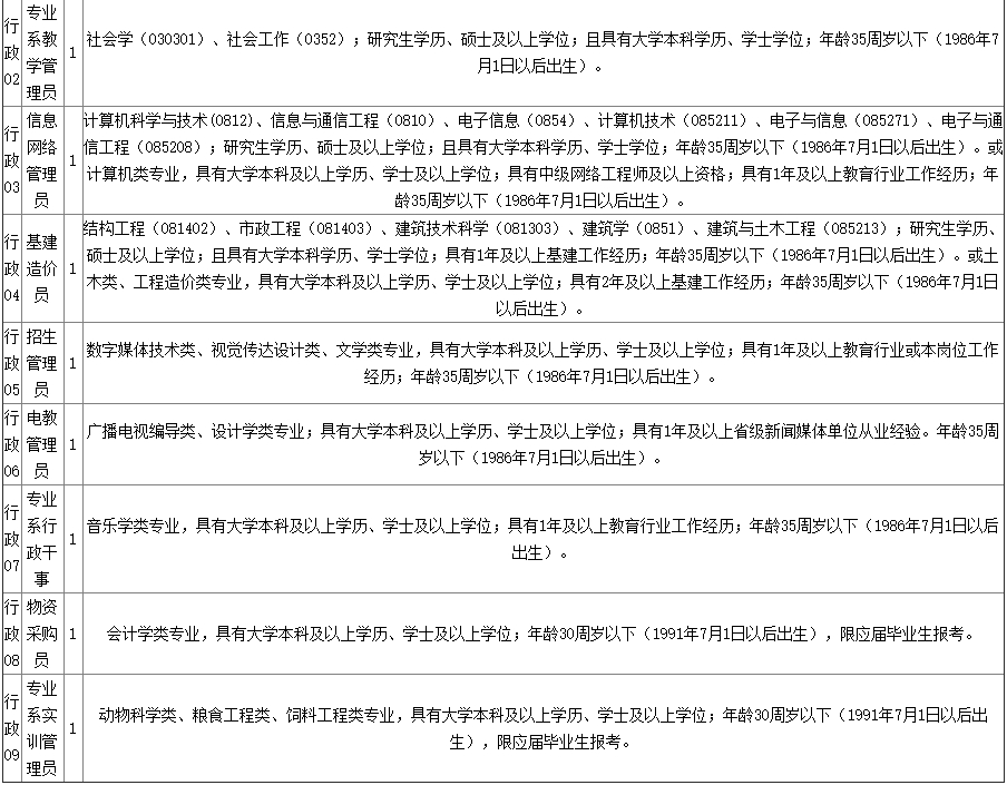 2.以上岗位条件中的学科专业按照教育部印发的《研究生学科专业目录》《专业学位授予和人才培养目录》《普通高等学校本科专业目录》设置,专业名称后括号中的数字为学科专业代码。
